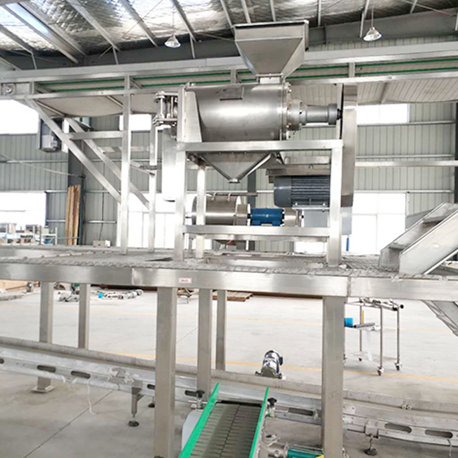 System composition: lifting system, cleaning system, sorting system, core removal system, preheating enzyme removal system, beating system, vacuum concentration system, mixing system, sterilization system, aseptic large bag filling system, small packaging system